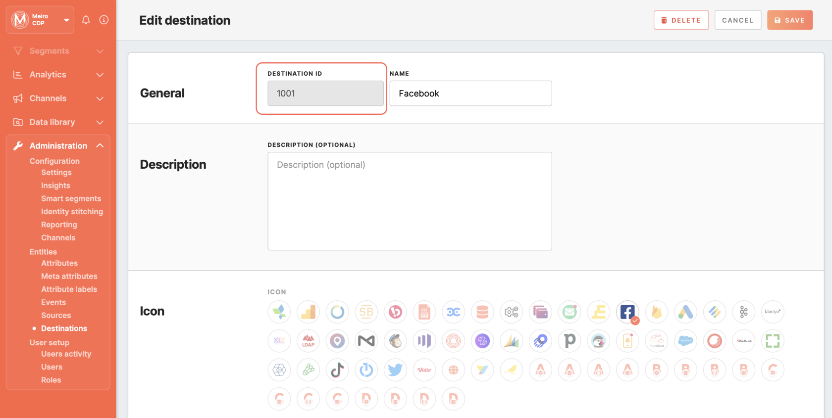 "The Destination ID" is a numeric value that analysts will refer to within the Meiro Integrations environment. After you choose the ID, it will not be possible to change it later on.