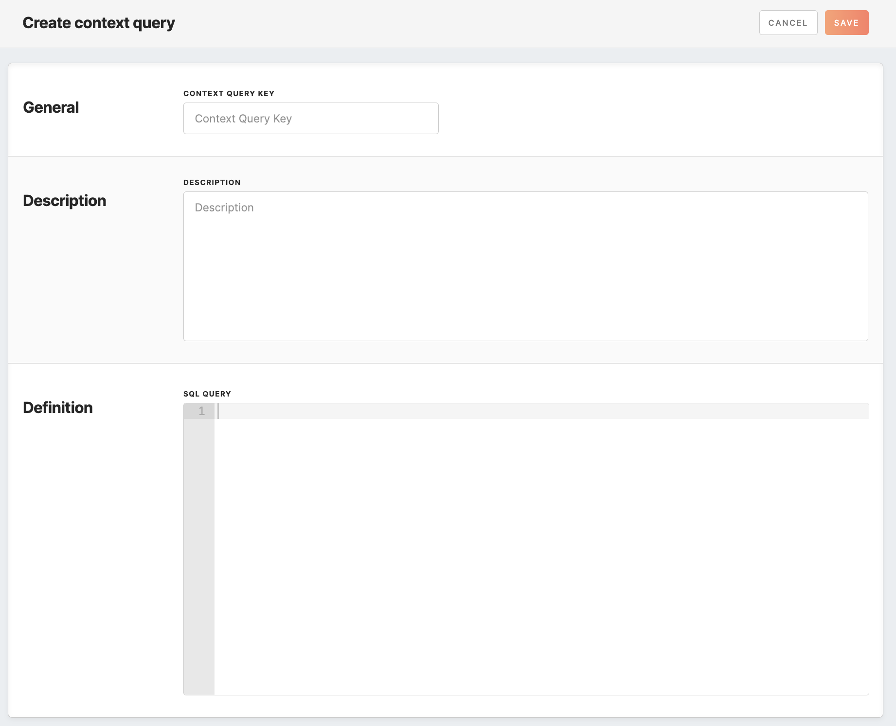 To create a context query, click the ‘Create’ button and complete the form.