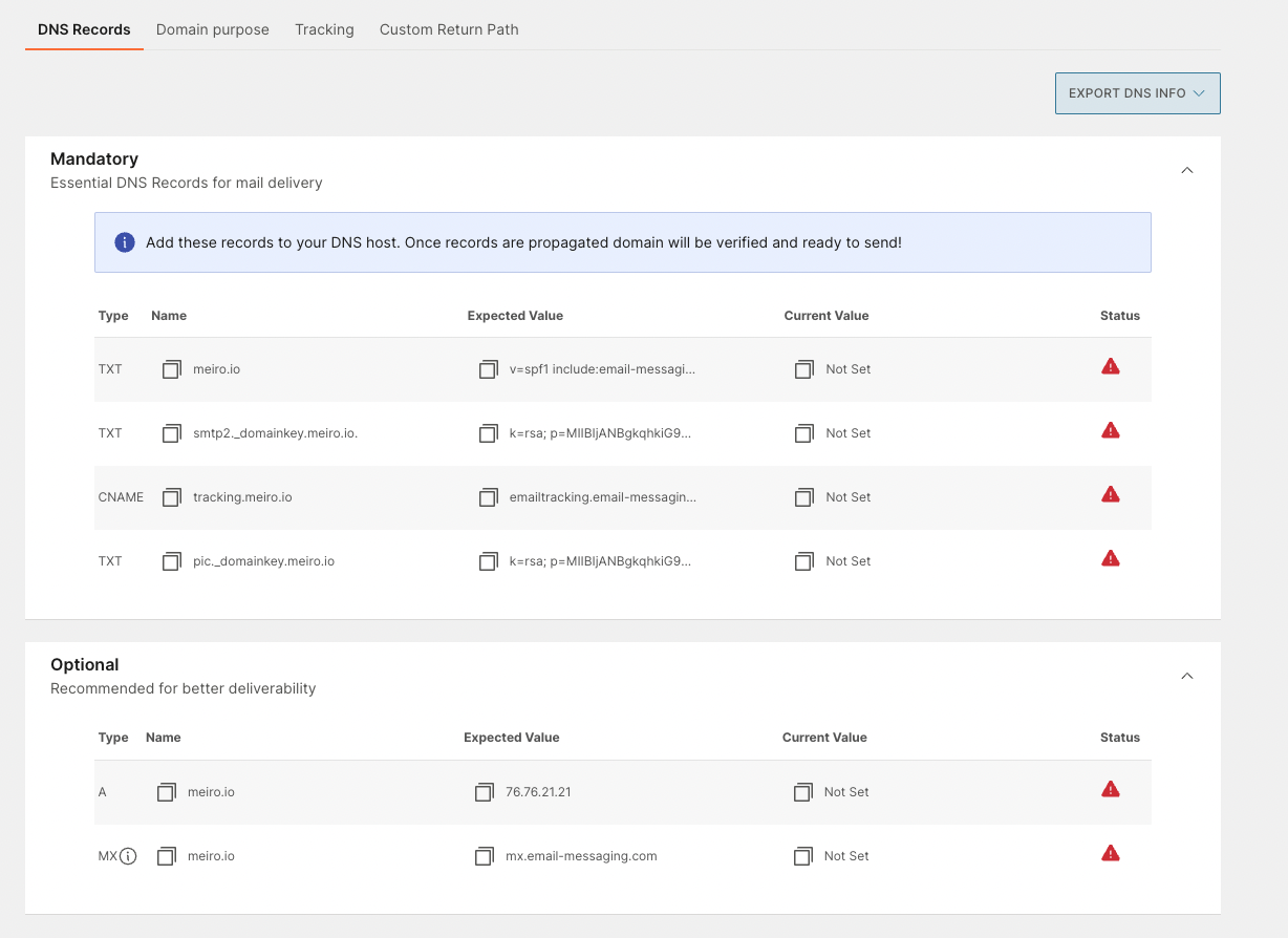 Warning: follow the Email provider's info with a specific process, e.g., Infobip, Brevo.