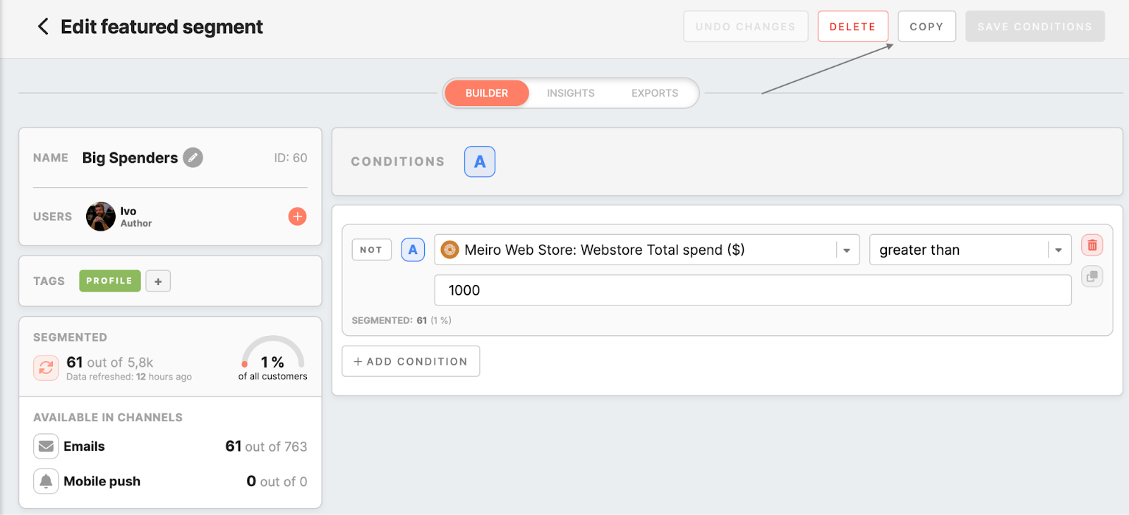 Besides, you can copy featured segments from the detail page and make changes as needed (rename them, add additional conditions, etc.).