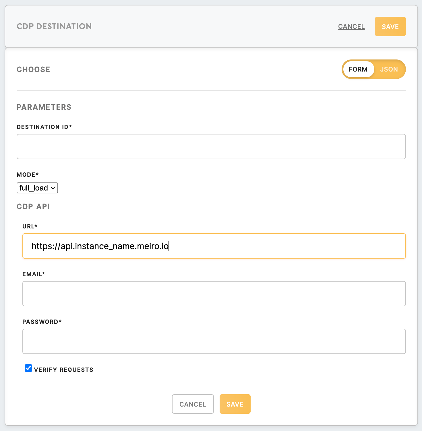 In most cases, the "verify request" option in the CDP destination loader configuration has no significant impact. However, it becomes crucial when operating CDP on-premises with custom SSL certificates that are not recognized by MI. Enabling this option allows requests to proceed ignoring SSL certificate verification. |