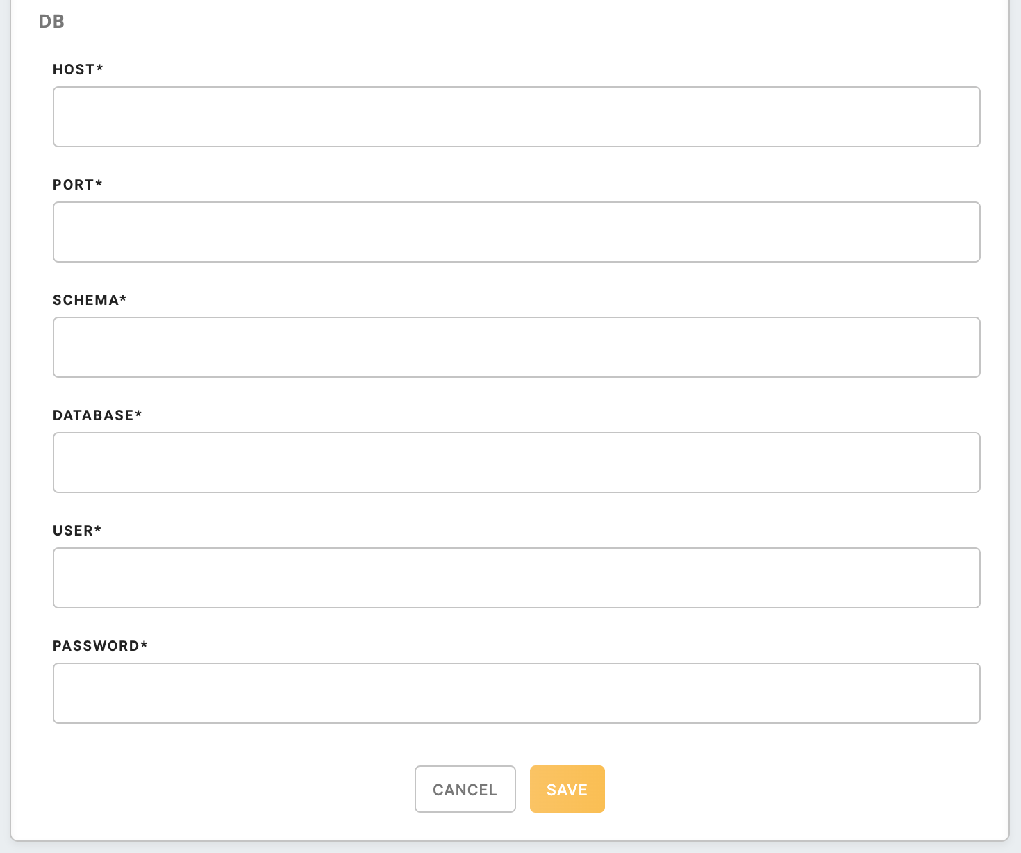Credentials of the database you would like to connect to: